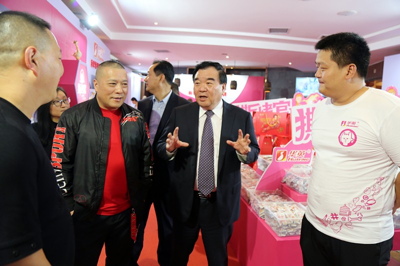 董事长一行亲自欢迎到场客户 展会现场,华英公司董事长曹家富亲自为“撕烤官”系列产品作推介,并向各地经销商送上真诚祝福。他说,华英“撕烤官”是一个活力新品,前景可期,公司会在以后的市场研发中灵活捕捉消费变化,顺势而为,坚持创新,为消费者提供更多优质安全的华英产品。