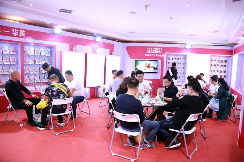 华英"撕烤官”重磅亮相糖酒会 糖酒会一年两次,号称行业的“风向标”和“晴雨表”,一向备受关注。华英展厅位于华雅国际酒店4楼红酒吧,150平米的展厅通体运用“撕烤官”的专属色调,夺目新颖。整个华英展厅陈列美观,形象鲜明,吸引了众多客户驻足品鉴。